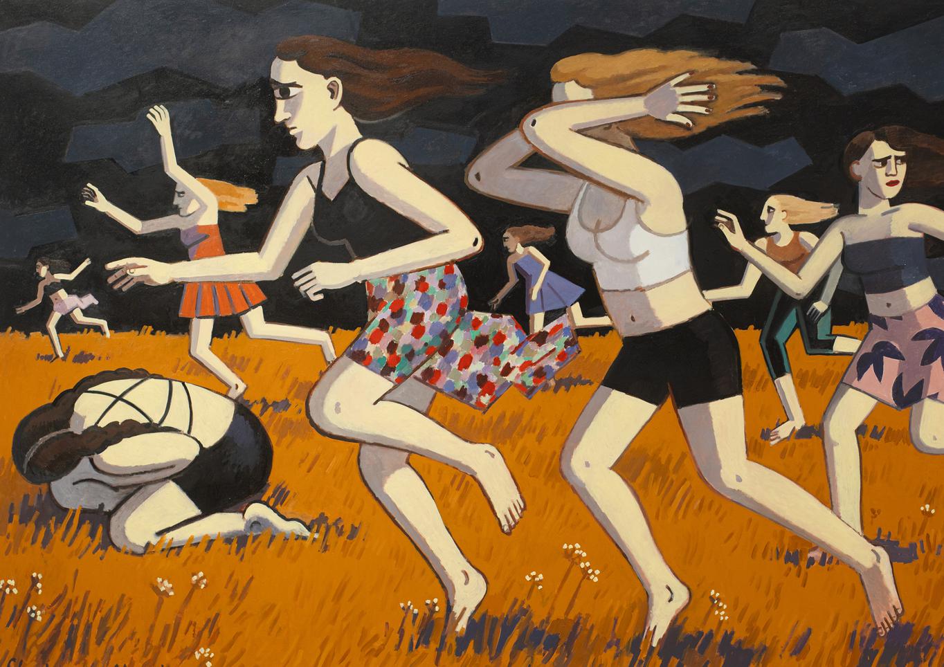 Zoya Cherkassky-Nadi’s painting The Terrorist Attack at Nova Music Festival 7.10.2023 (2024) is on display in the Israeli collection exhibition. In the wake of the Hamas terrorist attack on October 7, Cherkassky-Nadi created a series of vivid drawings of scenes of the disaster. These intimate drawings held monumental power, and she chose to enlarge one of them into a large-scale painting. The work simultaneously depicts the movement of women fleeing for their lives and the freeze-framing of the horrendous moments of terror that will be forever imprinted on Jewish and Israeli history.