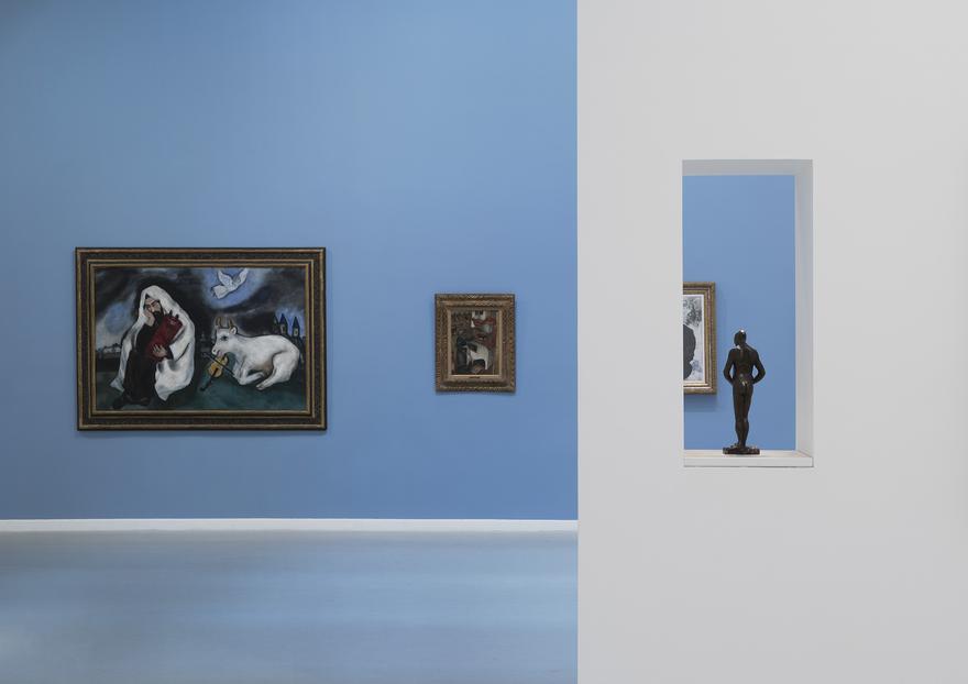 Another important artist who is featured extensively in this gallery is Marc Chagall. He became a close friend of the Tel Aviv Museum soon after its founding, and even contributed the first official artwork of its collection — his painting Jew with Torah (1925).