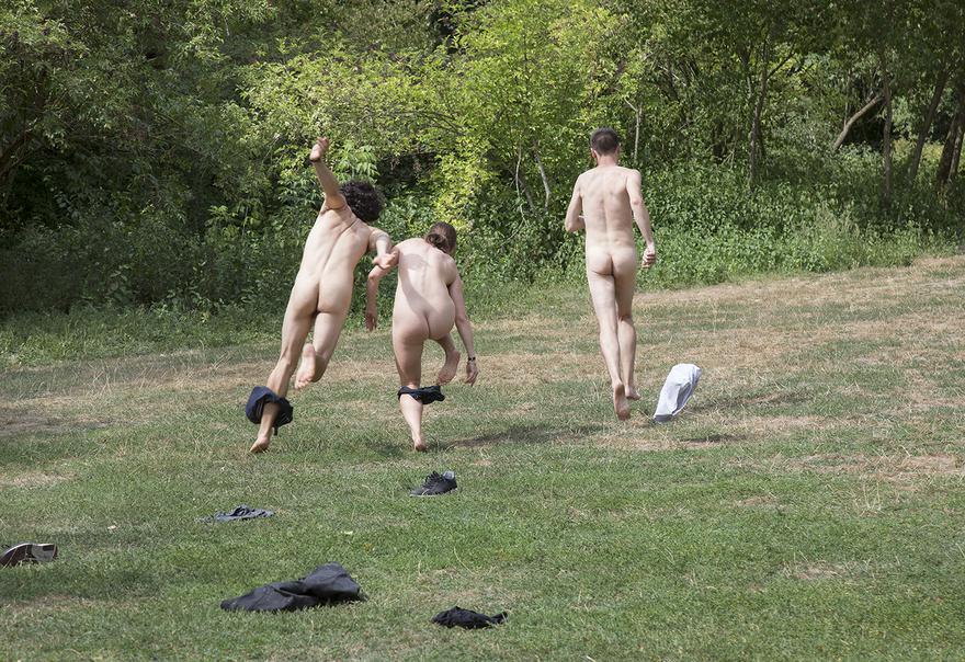 A monumental light box, The Party, comprised of dozens of photographs of youngsters dancing, is in the center of the gallery. Each of the figures was photographed alone in the studio, and collating them into one photograph is artificial. The size of the light box sets a boundary within the exhibition space, becoming a sculptural-photographic element.