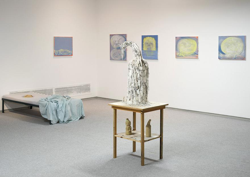 In his works, Nave creates objects that seem to be soaked in an emotional hot tub composed of sadness, anxiety, amazement and longing. He regards the inanimate as living and bestows it with qualities and expressions. On the one hand, the objects, the sculptures and the paintings are all laden with human feelings, and on the other, the human body is deconstructed, like a rebellious flight of limbs in which every object or limb demands its independence in the world. Through the social-office ritual, Nave constructs an environment that livens emotional margins, where too-brittle love exists alongside death, and terror is laced with humor.