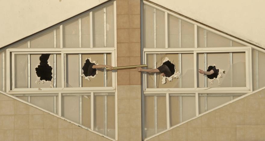 Hilla Toony Navok uses industrial materials and everyday objects to generate a subversive, humorous gaze at the design of the Israeli urban space, while fusing the aesthetics of modernism and its incarnations with its local manifestations. Shopping centers, apartment buildings, and neighborhoods of single-family homes (Bne Beitkha) built in the 1980s and 1990s between Hadera and Ashdod are some of the spaces from which she draws inspiration. In the current exhibition, Navok presents new video and sculptural works, which transpire in the liminal spaces on the border between interior and exterior, the private and the public. Physical gestures of infiltration, breaking in, or splitting, which she performs on the façades of commercial buildings or in lobbies to apartment buildings, may be construed as attempts to hack the system or as forms of resistance and breaching of peace