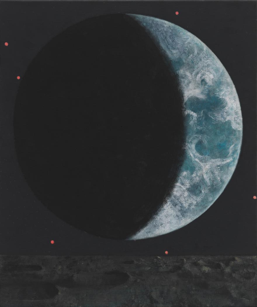 שעת הדמדומים, מרחב הביניים בו פועלת התערוכה, מקבלת ביטויה בסצנות הנעות בין עלות השחר לשעת השקיעה והאפלה. כך, רקע השמיים ציורו ענק הממדים של האמן האמריקני אלכס יזראל, מטשטש את הגבול בין אמנות למופע ראווה הוליוודי ומעלה שאלות באשר לאותנטיות ואמת, ומקומה של אשליה. ברגעי מעבר אלו טמונה הבטחה להתחדשות, אך גם הטלת ספק במציאות, ובטבעה של התקווה.