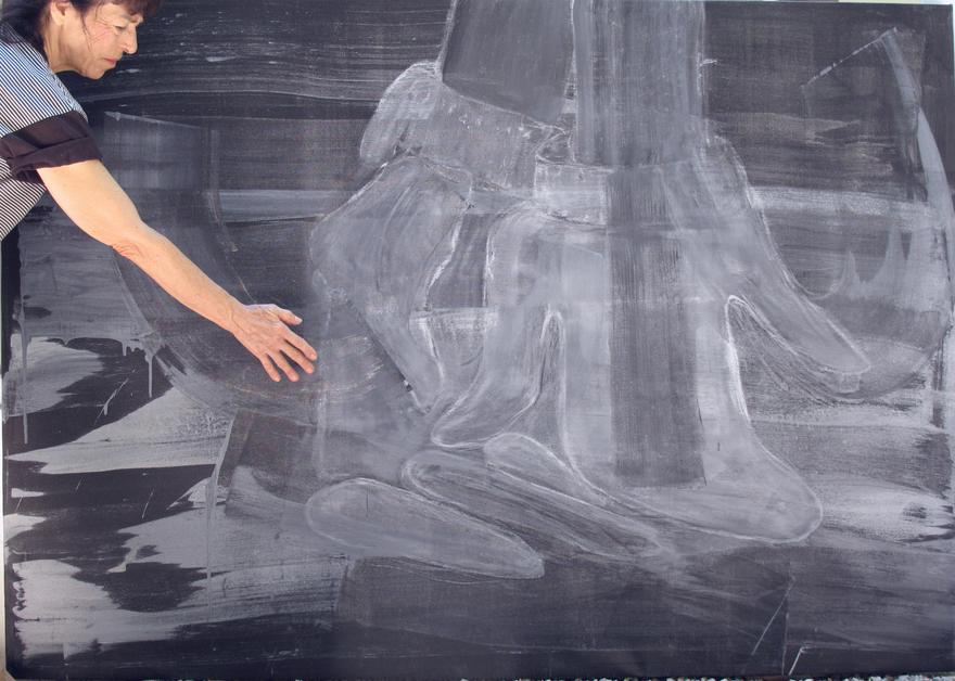 כף יד או ידיים פועלות — בונות, מניחות, סוחבות, אוחזות, אומדות מרחקים, תמיד צפות בחלל הציור — שכיחות בעבודתה של גטר מאז שנות ה-70. בהצבותיה ובעבודות הווידיאו המאוחרות היא משתמשת גם ביציקות, בצילום וברישום של יד בפעולה. בעבודותיה המוקדמות סימנו הידיים את הציור כמעשה בנייה במרחב סכימטי או מרחב של סמלים, והן אופיינו כידיים של בנאים, רקדניות, פועלים; בשלב מאוחר יותר, ובגוף העבודה הנוכחי, הידיים מתגלמות כציור עצמו. גטר עובדת כמעט רק בצבעים שחור ולבן, מוותרת על תיאורן האנטומי של הידיים, ושומטת כליל את מושאי האחיזה. הציורים מתגלים לעין הצופה כפנטום של פעולת היווצרותם.