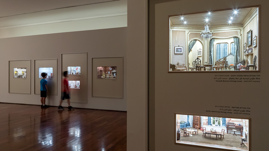 Visitors are invited to stroll down a typical Tel Aviv street and gaze through the building windows into tiny, mesmerizing time capsules that reveal rooms filled with highly detailed objects, whose style ranges from that of the 16th century to that of the early 20th century.