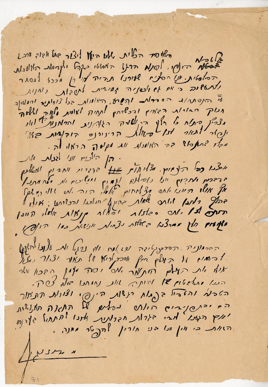 עמוד מתוך מחברתו של דיזנגוף על המוזיאון, 1931